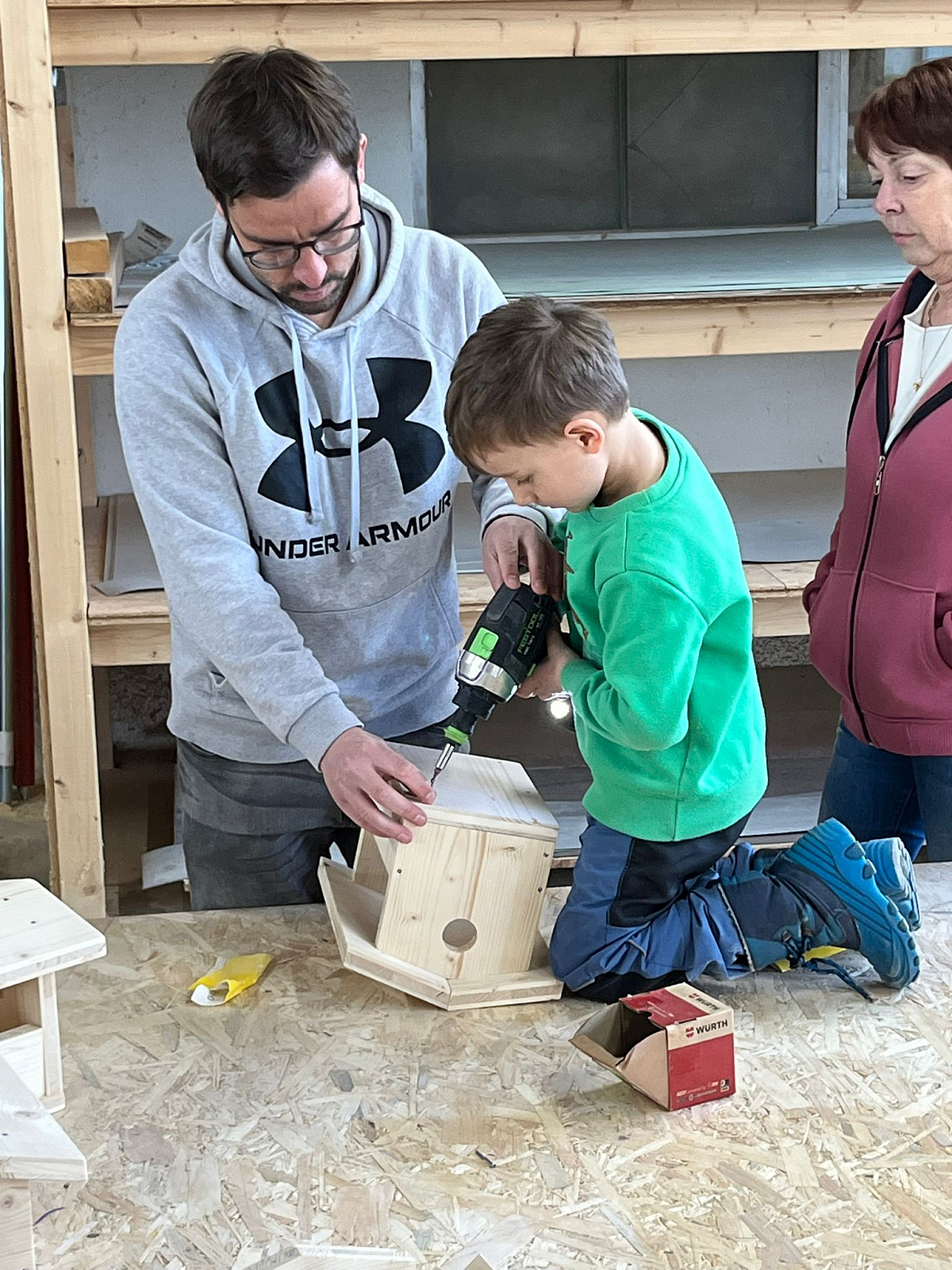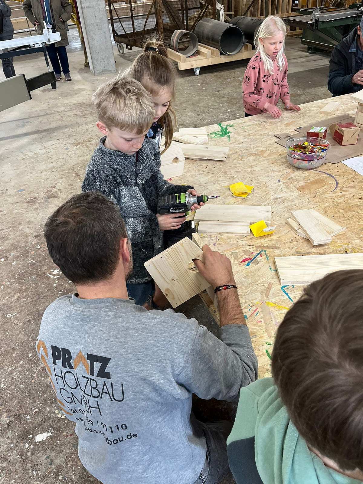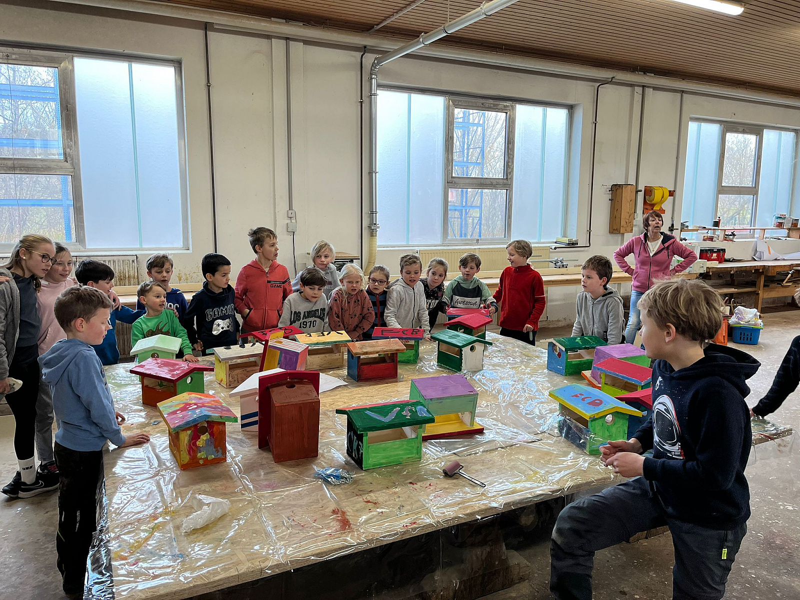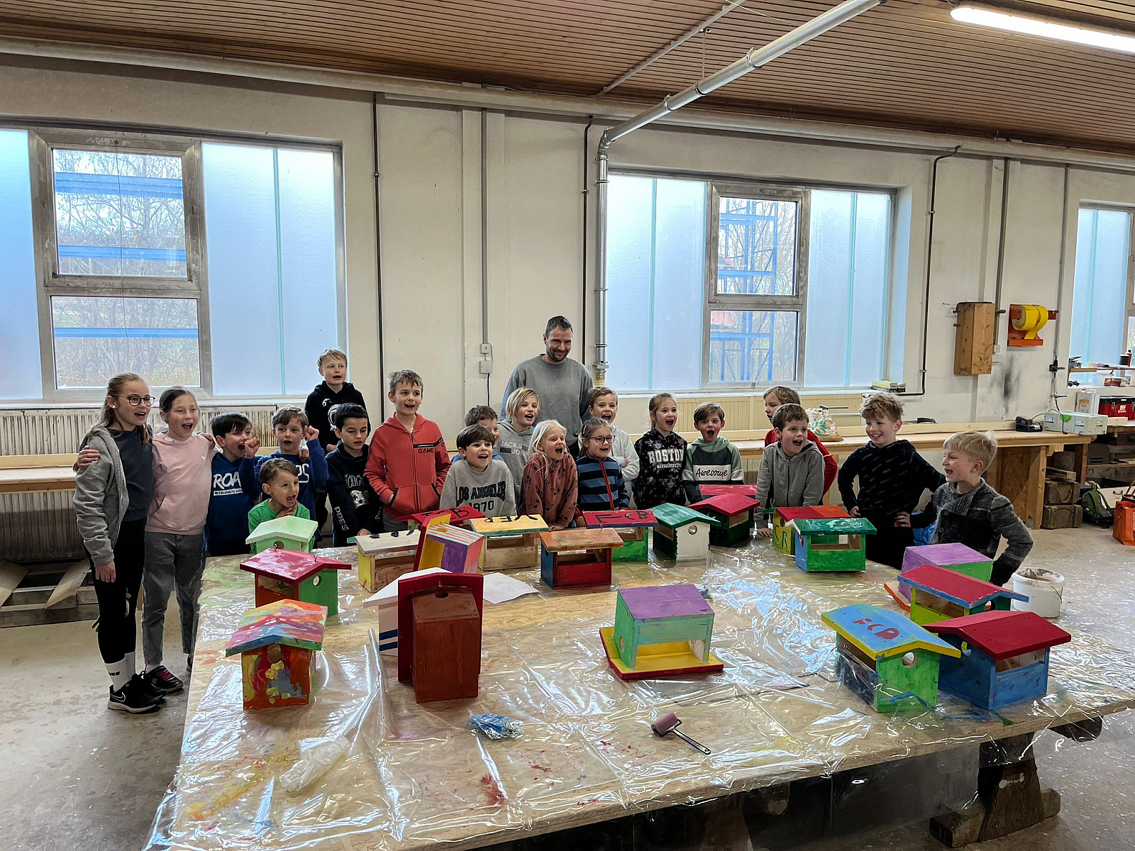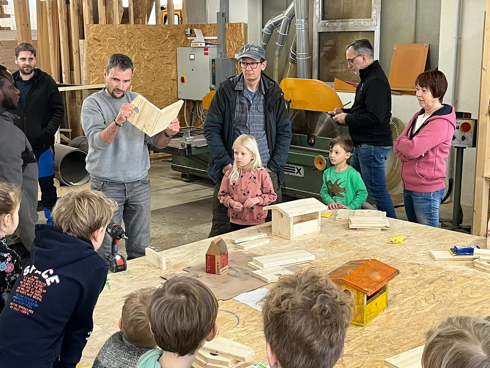 20 Kids des VfR Altenmünster durften in Begleitung von Eltern bei der Firma Holzbau Pratz in Honhardt Vogelhäuschen selbst zusammen bauen und farblich gestalten. Mit großem Eifer wurden die vorbereiteten Holzteile mit Schmirgelpapier bearbeitet, zusammengeschraubt und dann farblich gestaltet. Als Belohnung für die fleißigen Arbeiter gab es Getränke und Brezeln sowie natürlich auch etwas Süßigkeiten, gespendet von der Firma Holzbau Pratz.