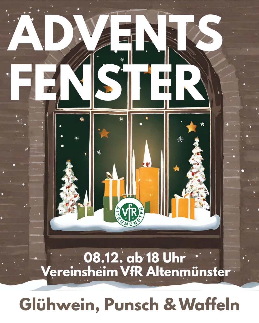 Wir machen beim lebendigen Adventsfenster mit, und freuen uns auf eueren Besuch am 08.12.2025 um 18:00 Uhr am Vereinsheim. Es gibt Punsch, Glühwein und leckere Waffeln.
